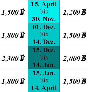 Der Preis für beide Zimmer beträgt das ganze Jahr über nur 2,000 Baht pro Tag.